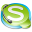Icon Description: Skype icon with a small headset style microphone overlaid.