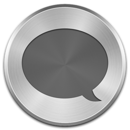 Icon Description: Simple comment bubble on brushed metal circle.