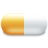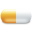 Icon Description: A yellow and white capsule or pill laying on its side makes a great med icon.