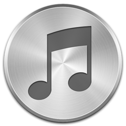Icon Description: Cool iTunes based icon on a round silver button of brushed metal.