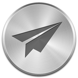 Icon Description: Paper Air Plane on a silver brushed metal disc. Could represent either air mail, or air plane, or flight.