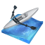 Icon Description: This boat is used specifically for the sport called rowing. In this picture, we can see the small boat having its oars and is floating on water.