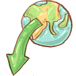 Icon Description: This is a cute icon where the Earth and green arrow are drawn lovingly by hand.