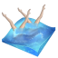 Icon Description: Synchronized swimming is a combination of dancing, swimming, and gymnastics, You can see here that the players are submerged and only their legs are showing.