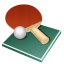 Icon Description: This are the things that a table tennis player needs to be able to play. The picture includes the racket and the ball set on a green background.