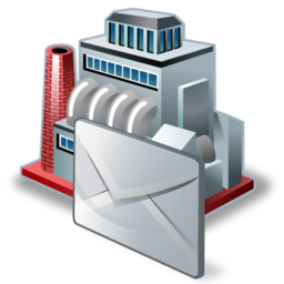 Icon Description: You can see a factory behind a large white envelope.