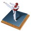 Icon Description: This is a picture of a taekwondo player or fighter having a complete outfit. He is showing an attack called high kick