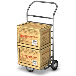 Icon Description: There are two wooden boxes that are put on a box carrier ready for transport.