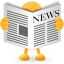 Icon Description: Newspaper icon or news icon with a little yellow head, hands, and feet poking around the paper.
