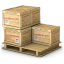 Icon Description: This handy pallet is now carrying five wooden boxes that are ready for transport via forklift.