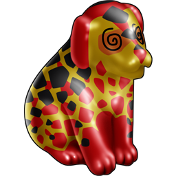 Icon Description: This puppy has both red and yellow colors, plus some black patches and lines.