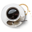 Icon Description: Coffee Cup and Saucer along with a spoon and a coffee stain on the table. Great for a coffee house app.
