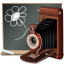 Title: Vintage Camera and Chalkboard