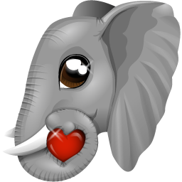 Icon Description: The elephant is holding a red heart with its long snout.