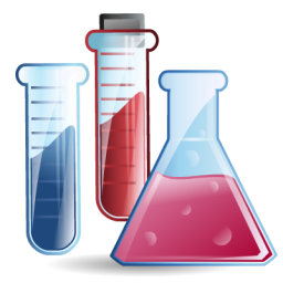 Icon Description: 3 Different beakers with different colors of liquid inside.