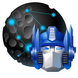 Icon Description: The face of Optimus Prime is shown here in front of a blue planet.