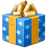 Icon Description: A nice Christmas present or gift wrapped in wrapping paper and tied with a gold ribbon.