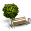 Icon Description: This bench has a nice tree and a trash can on its sides.