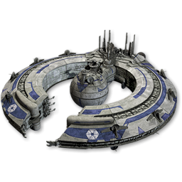 Icon Description: A large circular battleship in the Star Wars movie.