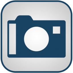 Icon Description: A simple camera icon with the colors blue and white.