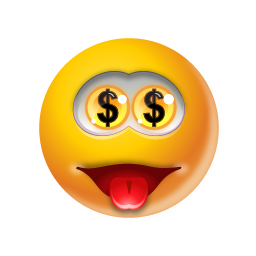Icon Description: This yellow emoticon has seen lots of cash!