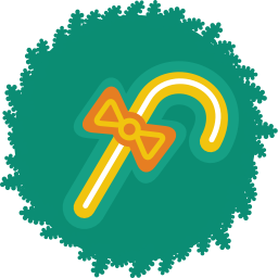 Icon Description: A sweet candy cane is placed in the middle of this green wreath.