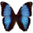 Icon Description: The wings of this butterfly is colored blue with black, plus some white spots at the tips.