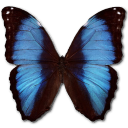 Icon Description: The wings of this butterfly is colored blue with black, plus some white spots at the tips.