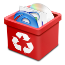Icon Description: This bright red recycle bin is so full of deleted stuff!