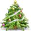 Icon Description: This big Christmas tree is filled with colorful decors.