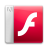 Icon Description: The Adobe Flash layer icon with a white cursive lowercase f and a red cube. Small adobe logo in top left hand corner.